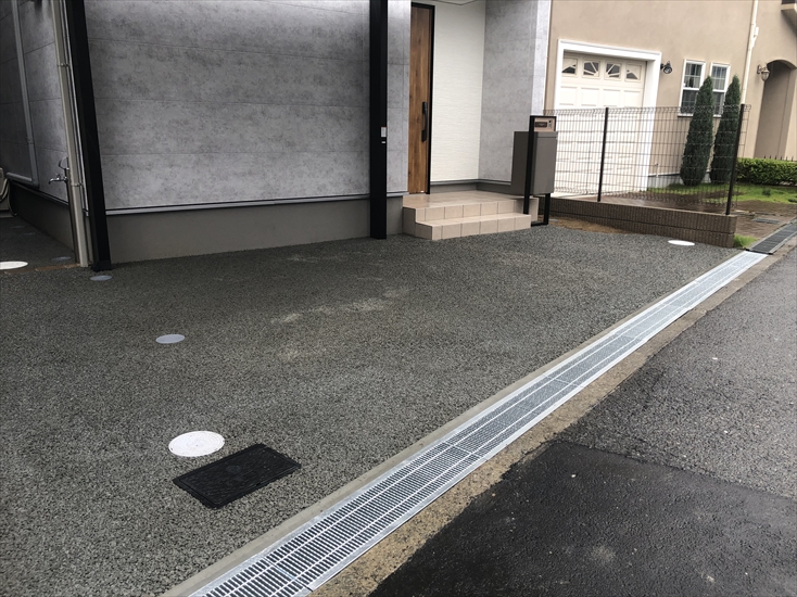 最近、人気急上昇のドライテックコンクリートを建物周り全体に施工致しました。 カーポートはLIXILのカーポートSCを使用してシンプルでカッコイイ外構が仕上がりました(^▽^)/