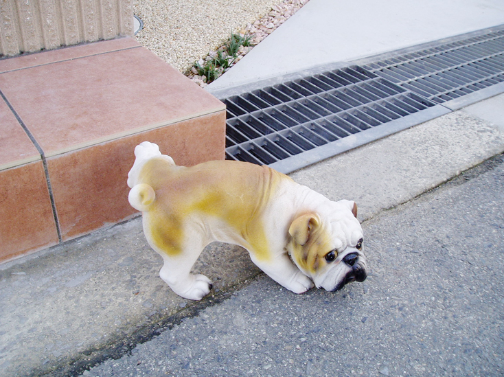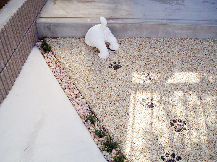 駐車スペースや門柱、門扉などのエクステリア工事をいたしました。 かわいい犬のオブジェも設置しました。