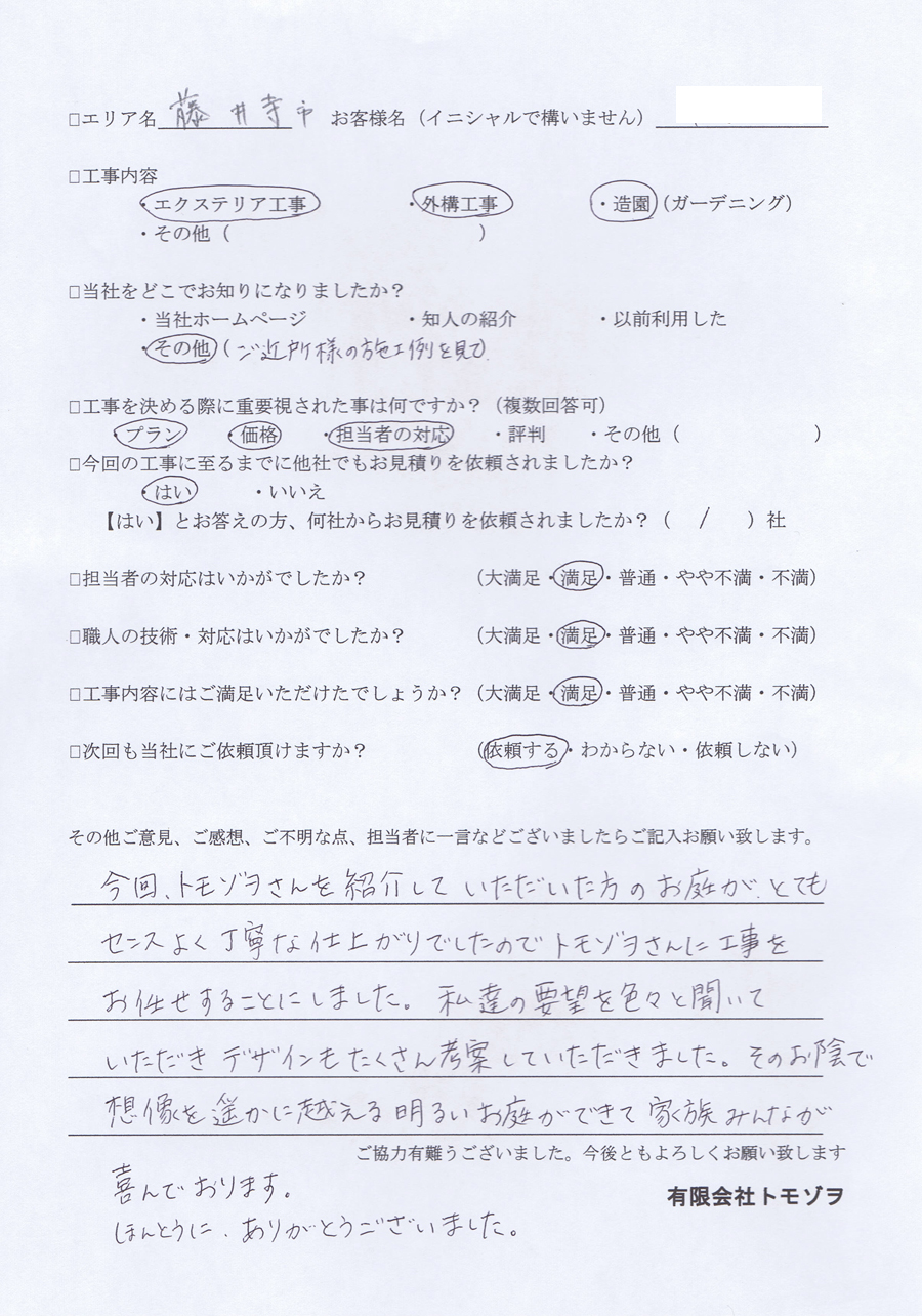 エクステリア 外構工事 大阪狭山市 TOP > お客様のお声